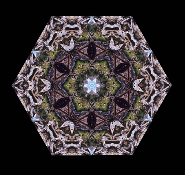 I enjoyed the previous assignment so much that I decided to do another tesselation. I created this second tesselation from a triangle cut from a mountain scene. When put together, the images made a kaleidoscope. You Have to enlarge the image quite a bit to be able to pick out the sky, mountains, stream, and fence of the mountain scene. Actually, the original picture was from a hike I did in Rocky Mountain National Park.